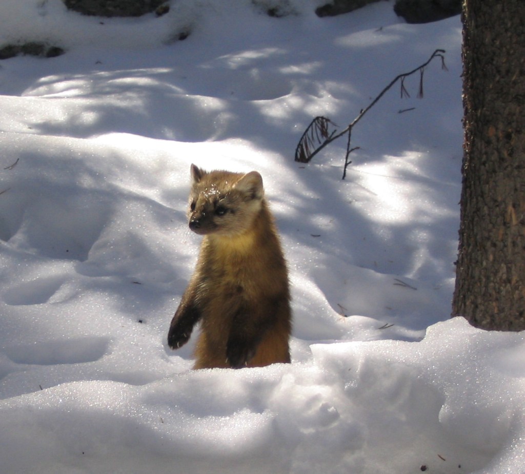 A community of snow-specialist hunters has evolved to rely on the winter abundance of small mammals and rodents that comprise the majority of the subnivean fauna. Throughout the western US and California these include Martens (Martes americana), Fisher (Pekania pennant); weasels (Mustela frenata and richardsoni); Coyote (Canis latrans); fox species; and Great Gray Owl (Strix nebulosa), among others.
