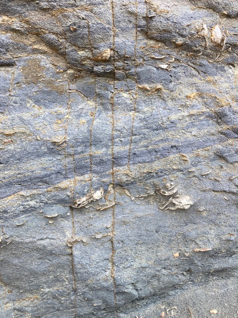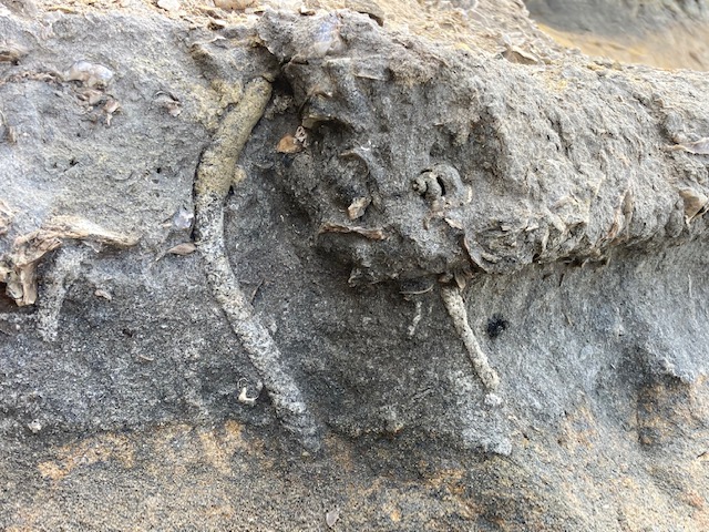 The Del Mar Formation: Middle Eocene ~45,000,000-49,000,000 years old; Hard, yellow-Grey to green; Fossiliferous; Shale, siltstone, sandstones from depositional environment of estuary mud and silt