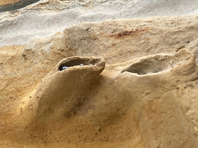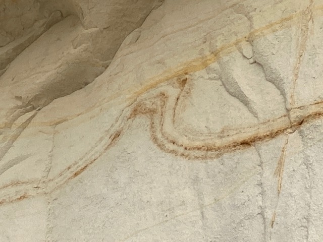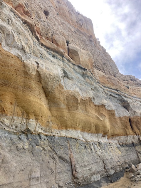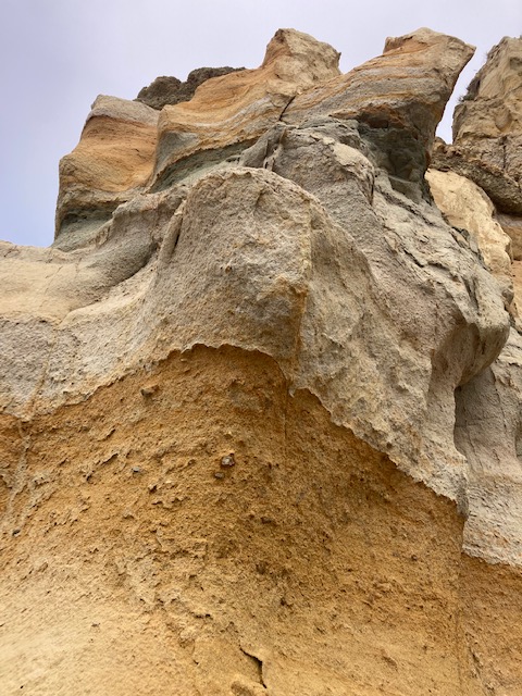 Torrey Sandstone: Middle Eocene ~45,000,000-49,000,000 years old; Soft, white/beige to yellow; Sandstones of beach and offshore sandbar sands