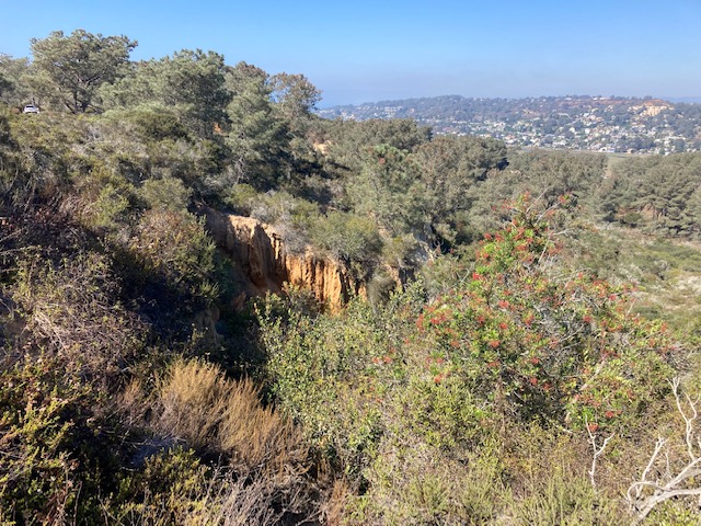One of the most unique and endangered chaparral community-types is Maritime Chaparral. It is found along the California coast in verdant patches at distinct locations, including among the crumbling ruddy sandstone terraces of Torrey Pines State Natural Reserve.