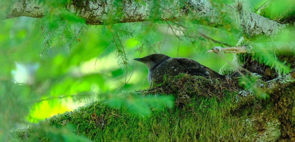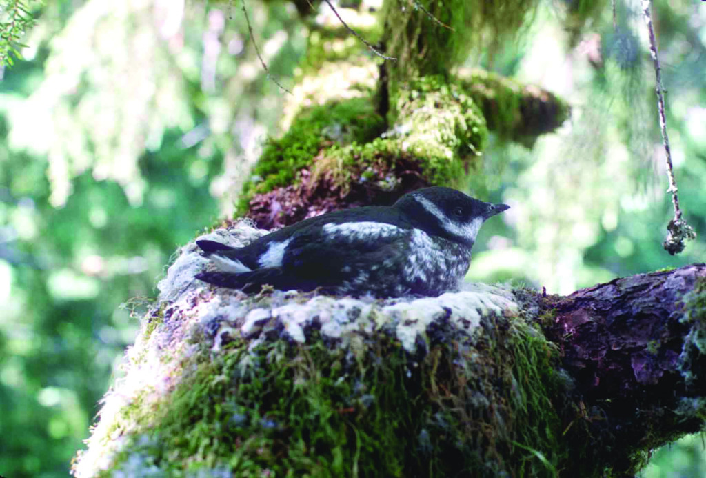 The Marbeled Murrelet is a small seabird that occurs off the West Coast of North America from Southern California to Alaska. The population from California through Washington is determined to be genetically distinct, and is listed as federally threatened as well as endangered in California and Oregon under these states’ Endangered Species Acts. The threats to this fragile species are directly related to loss of old growth redwood and Douglas fir nesting habitat due to logging. Additional pressure on the canopy mat nesting grounds of the murrelet comes from predation by corvids.