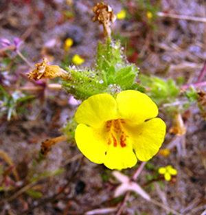 Rare and endemic plants found within the Burton Mesa Chaparral include the Vandenberg monkeyflower (Diplacus vandenbergensis), Purisima manzanita (Arctostaphylos purissima), Sand Mesa manzanita (Arctostaphylos rudis), Lompoc ceanothus (Ceanothus cuneatus var. fascicularis), and Lompoc Yerba Santa (Eriodictyon capitatum).