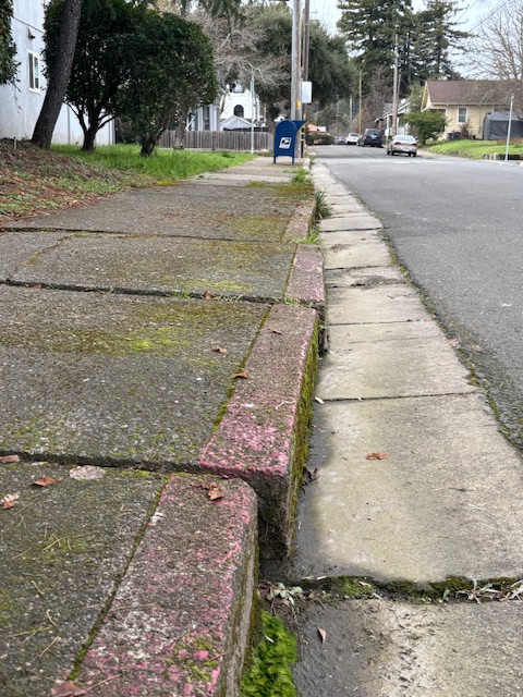 Markers of a-seismic fault creep on the Maacama Fault as seen in the neighborhoods of Willits, Mendocino County. The Maacama Fault is the major right lateral transform/strike-slip fault of the San Andreas system in Northern California.