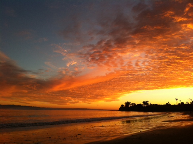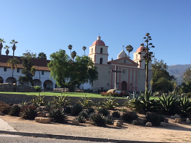 The large bay lay about us, nearly smooth as there was hardly a breath of wind stirring, though the boat’s crew who went ashore told us that the long ground swell broke into ta heavy surf on the beach… In the middle of this crescent, directly opposite the anchoring ground, lie the mission and town of Santa Barbara, on a low plain, but little above the level of the sea, covered with grass, though entirely without trees, and surrounded on three sides by an amphitheater of mountains, which slant off to the distance of fifteen or twenty miles. The mission stands a little back of the town and is a large building, or rather collection of buildings, in the center of which is a high tower, with a belfry of five bells. The whole, being plastered, makes quite a show at a distance and is the mark by which vessels come to anchor… Just before sundown, the mate ordered a boat’s crew ashore, and I was one of the number. We passed under the stern of the English brig, and had a long pull ashore.