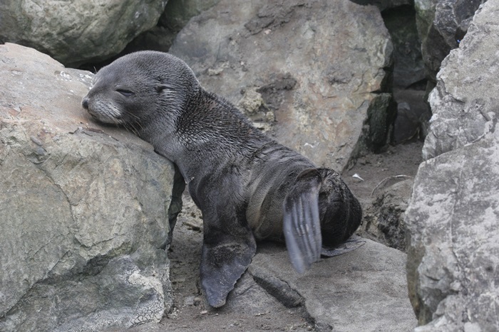 By February, the nursing females have used up all their physical resources on nourishing their pups, are mated by the dominant male, and then return to sea to feed, leaving/weaning their pups. When most of the adult females have left the Farallones, the adult males leave by the end of February, and the pups remain alone on islands for another three-four weeks until they become hungry enough to take to the waters and learn to survive in the north Pacific by feeding often at great depths.