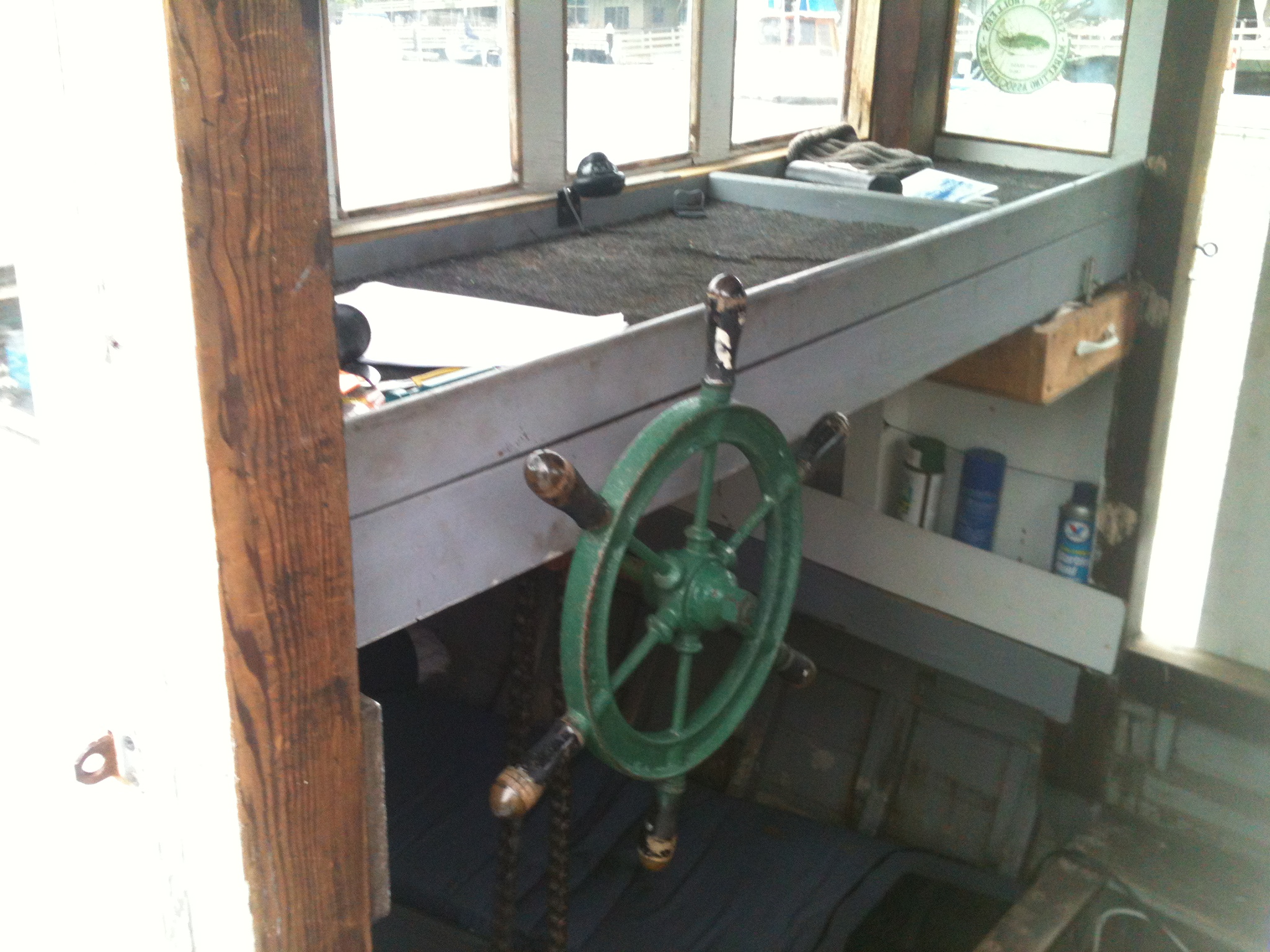 When I was working at the Bay Model as a tour leader there was a period of time I was staying at the Marin Headlands youth hostel a bunch, and needed a place to live. The supervisor at the Bay Model offered for me to live on the Wapama, which was great. There were a couple of other guys living on it from the restoration crew I think. They were characters – one guy was a Hawaiian named Kawika with no front teeth, and a gnarly tattoo from his time in Vietnam. No one was using the captain’s quarters, so I moved in there. It was a trip living on that boat. It was huge with cavernous holds below decks. It was made entirely of Douglas fir – huge timbers for support beams. You had to climb up these big staircases to get between decks. It was a great time living there and walking to work at the Bay Model, downtown for sushi, sitting back for a beer alone in the wheel house enjoying prime views of the Bay. It had a smell that’s hard to explain that only old – really old – wooden boats have. The only bad thing was the Sausalito Ferry graveyard crew next to the pier making noise in the middle of the night.