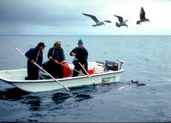 I like taking an ecosystem approach and so all studies are relevant to each other. You can’t understand the birds without studying what they eat, you can’t study what they eat without knowing about oceanographic processes, these oceanographic processes in turn affect how the marine mammals are doing, which indirectly affect the birds, etc. I tried to view all of these interactions through the eyes of the subjects themselves, and perhaps this was easiest with the Western Gull, since they are such intelligent birds. Based on the work of Larry Spear we had a very intense study where we followed about 500 banded birds through the breeding season each year – where they nested and who they nested with, how many eggs they laid and chicks they hatched and fledged. We got to know each of these gulls, and to recognize each one’s distinct personality. The 3 and 4 year-olds that had not yet bred (the equivalent to human teenagers) would hang out together in clubs, acting dumb and inexperienced, the males sometimes practicing copulation but standing backwards on the backs of females, eyes wide open with fear. Working with gulls, you really understood how they and humans are all of the same cloth, and how studying animals can help us understand ourselves.