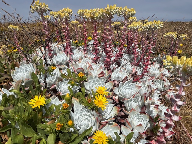 As with all things California biogeography, coastal prairie species composition is a mosaic that morphs, mixes, and varies widely from north to south with CA’s extreme annual moisture gradient. This has produced a spectrum of prairie-type assemblages and species associations too numerous to have been completely mapped or fully understood, as of yet.