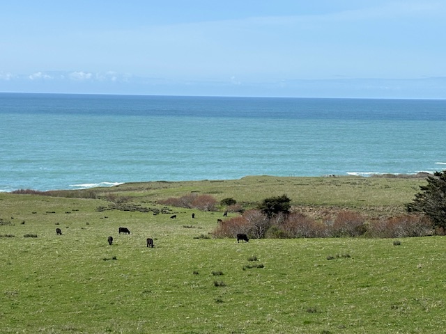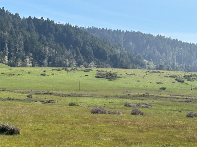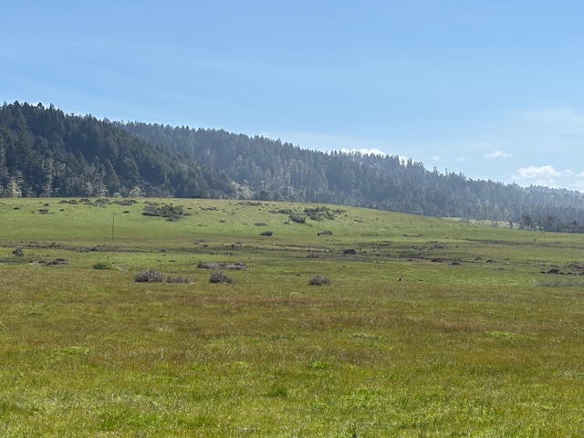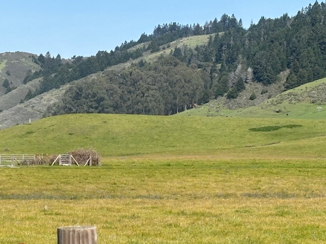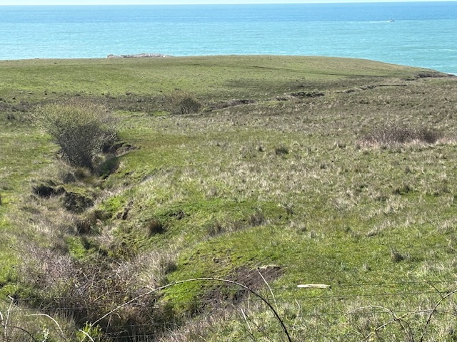 Standout tectonic landforms caused by this motion can be seen on the relatively flat, heavily grazed marine terrace, including several offset stream channels and a linear transpression ridge.